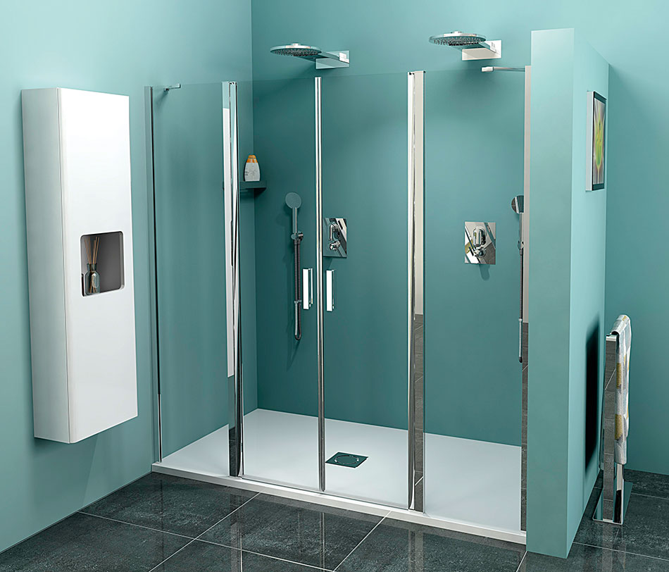 - Dveře 1600 a 1800 mm mají 2 pevné části a 2 otočné části, vhodné pouze pro instalaci do niky, nelze je kombinovat s boční stěnou