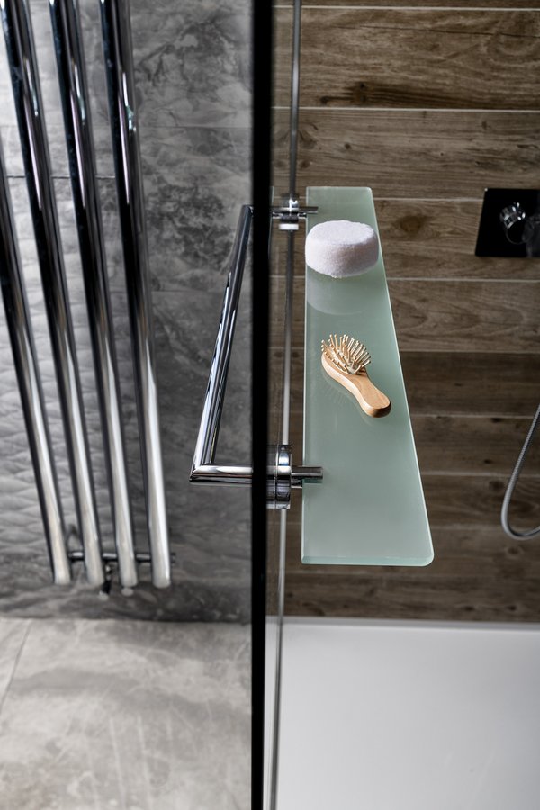X-ROUND police s držákem osušky na skleněnou zástěnu, chrom - XR458
